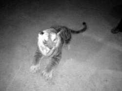 「老虎啊!老虎啊!....」 王姓男子說,當天晚上妻子在巡視工地時,發現6樓房間內躺著一隻「老虎」,被嚇得哇哇叫 ;他聞訊後上樓查看,果真發現房間裡有一隻「大老虎」躺在地上,兩隻眼睛瞪大,在黑暗中顯得相當可怕,隨即報警處理。