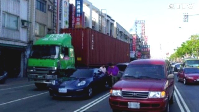 車流量相當大的鳳屏路,上班時間發生車禍後交通一度阻塞,只見大型聯結車司機坐在車上,雙手抱頭看似十分苦惱(下圖),因為他追撞3輛自小客車,其中一輛進口休旅車後車廂被撞凹、後車燈撞破,因為往前追撞所以車頭也有凹陷,另一輛則是4門的保時捷轎跑,後方出現擦撞痕跡。