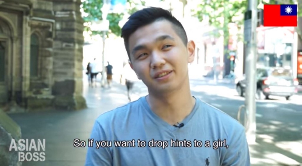 「Asian Boss」拍攝的影片首先訪問了一位日本男,他說,「日本有很多愛情旅館,如果你問女生要不要休息,就可以代表要去愛情旅館『休息』一下。」接著訪問到兩位印尼女,她們都同意「我們去暗一點的角落」就是「那句話」,韓國男則說,「在韓國,我想最流行的說法是,要不要來吃碗泡麵」。