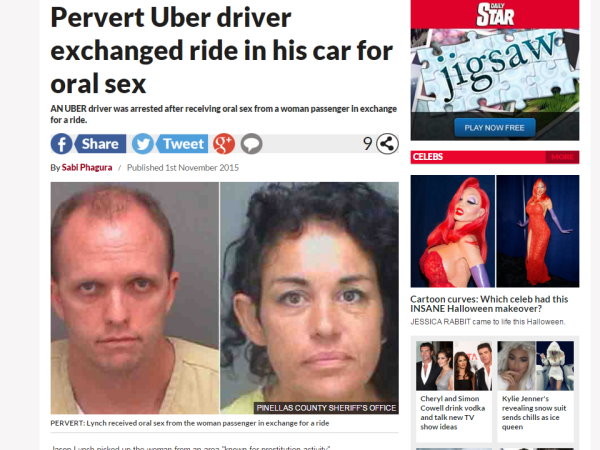 根據《每日星報》(Daily Star)報導,當地警方指出,42歲的司機傑森(Jason Lynch)是一名Uber司機,日前他載到一名女乘客、41歲的伊莉莎白(Elizabeth Santos),前往到當地的一處紅燈區。事後傑森對伊莉莎白說「用口交可以代替車資」,最後女方答應了,2人真的就在上演「活春宮」戲碼。