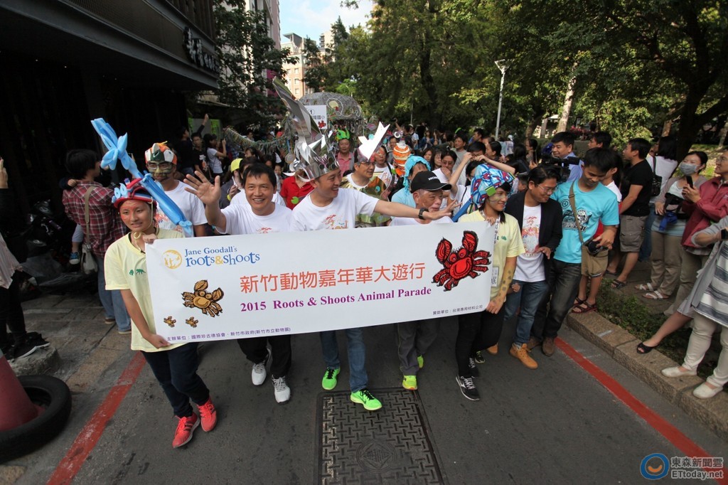 2015新竹動物大遊行,今天在新竹市228和平紀念公園登場,學生跟民眾打扮成各式各樣的海洋潮間帶生物,每一件的裝飾都是利用回收品打造而成,希望有效利用資源,也增加環保意識。