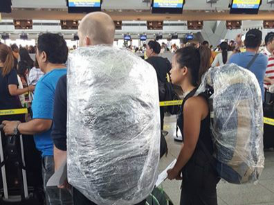 ▲馬尼拉機場栽彈事件頻傳,旅客求自保層層包裝行李。(圖/翻攝自臉書Wilfredo Garrido)