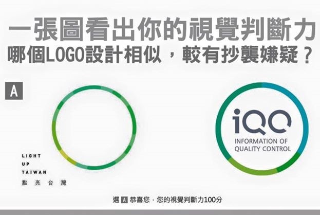 蔡正元臉書上貼出「視覺判斷力」對照表,分為A組與B組,各有2種不同的Logo。A組為蔡英文的競選主視覺「Light up Taiwan點亮台灣」、iQC商品安全驗證資訊網的Logo;B組為朱立倫的競選主視覺「One Taiwan 台灣就是力量」、蔡英文的「Light up Taiwan點亮台灣」。