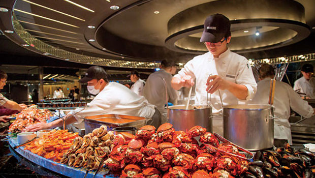 訴求「高端餐飲」服務形態,引導客人從「吃到飽」變成「吃到寶」,是自助餐廳業者能保獲利率的精算邏輯。