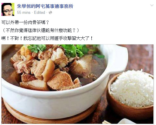 ▲朱學恒在臉書動態放上肉骨茶示意圖。(圖/翻攝自「朱學恒的阿宅萬事通事務所」粉絲專頁)