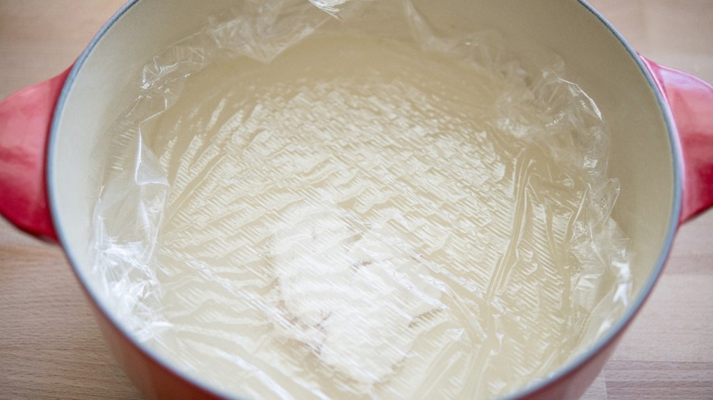 即可將湯中的油脂輕鬆去除!(溫馨提醒:一定要等湯完全放涼才能放保鮮膜喲)
