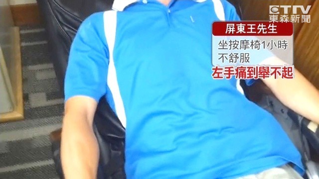 按下按鈕啟動按摩椅,只要躺下來就可以享受。但別以為坐按摩椅就可以達到全身放鬆的效果,有時沒弄好可能還會因此得到反效果。屏東的王先生喜歡按摩,坐上按摩椅舒舒服服按了1個多小時,沒想到非但沒放鬆,反而越按人越不舒服,到最後左手竟然痛到舉不起來。