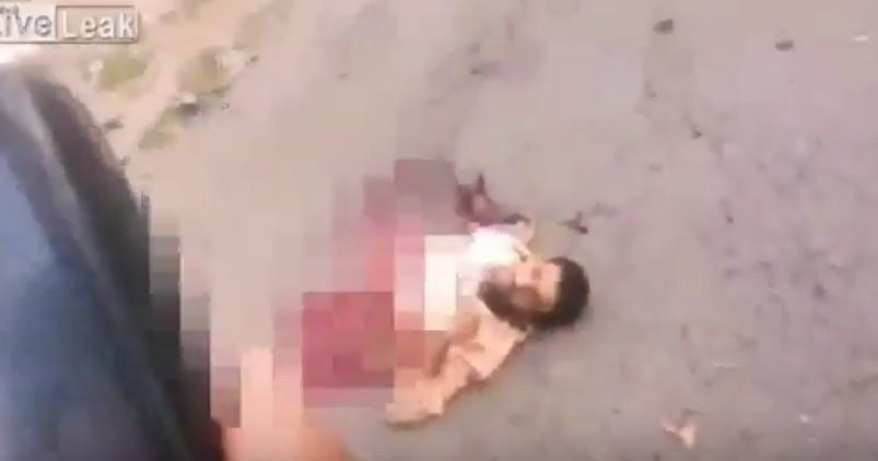 ▲一名自殺炸彈客儘管失去下半身,還能喃喃自語,並轉動頭部,畫面十分恐怖!(圖/翻攝自網路)