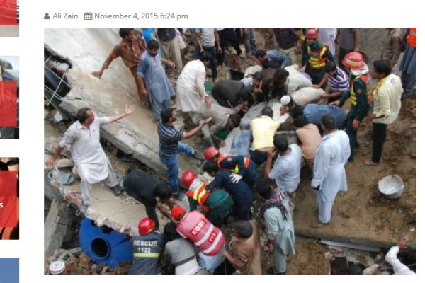 巴基斯坦東部大城拉合爾一座4層樓高,生產購物袋的工廠突然坍塌,崩落的土石與重力加速度造成大量傷亡,許多人仍被埋在其下。目前已知救出35人,70人受傷,找到10具屍體,但搜救人員估計,最後死亡人數很可能破200人。