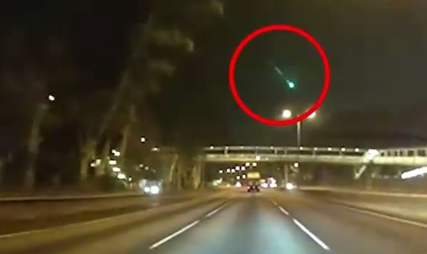 一道綠色光束4日劃過香港元朗夜空,有民眾的行車記錄器拍下那一瞬間(上圖/翻拍YouTube),感到十分興奮,上網查詢後認為應該是金牛座流星。而畫面在網上曝光,引發不小討論,有人指稱自己當時也目睹,「以為眼花!」