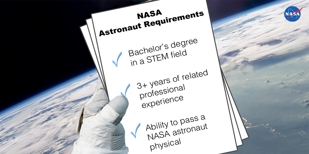 NASA還表示,入選名單將在2017年公布,想要申請成為太空人者,必須要是美國公民,擁有大學工程、生物、物理或數學學位及3年的相關專業經驗,或者累積至少1000小時的噴射機機長飛行時數經驗,還需通過適合NASA耐久太空飛行的身體檢查,在執行任務時,需要完善的團隊合作技巧、強健的體力、艱忍的心理素質,及機靈敏捷的應對。