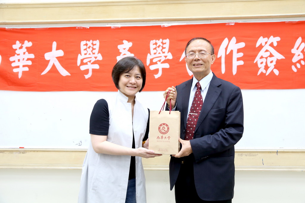 ▲南華大學校長林聰明(右)與承億文旅總經理戴淑玲。(圖/南華大學提供)