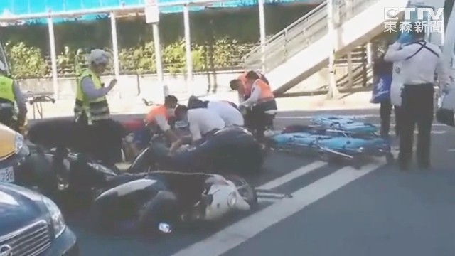 行車紀錄器畫面顯示,肇事的呂姓騎士機車撞車後倒地,連人帶車滾了幾圈後重摔在地,機車撞上等紅燈的女騎士,女騎士無端被後方機車撞,重心不穩往前跳了好幾下,隨後嚇得趕緊逃離現場,留下動彈不得的呂姓騎士。警消獲報後趕到現場,趕緊用擔架將他緊急送醫,但已回天乏術。
