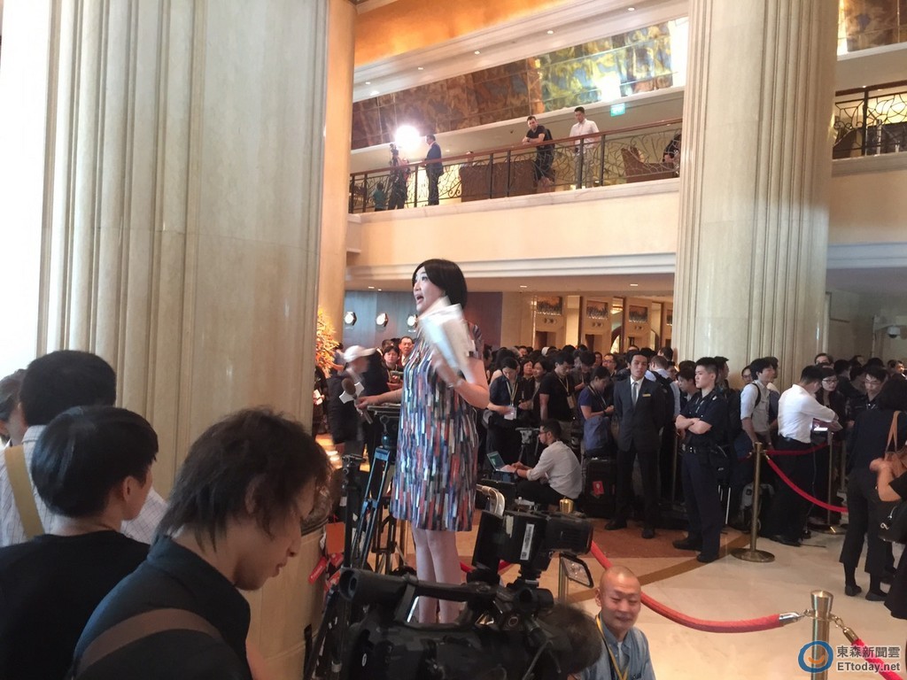 ▲方念華在香格里拉飯店大廳連線。(圖/記者陳弘修攝)