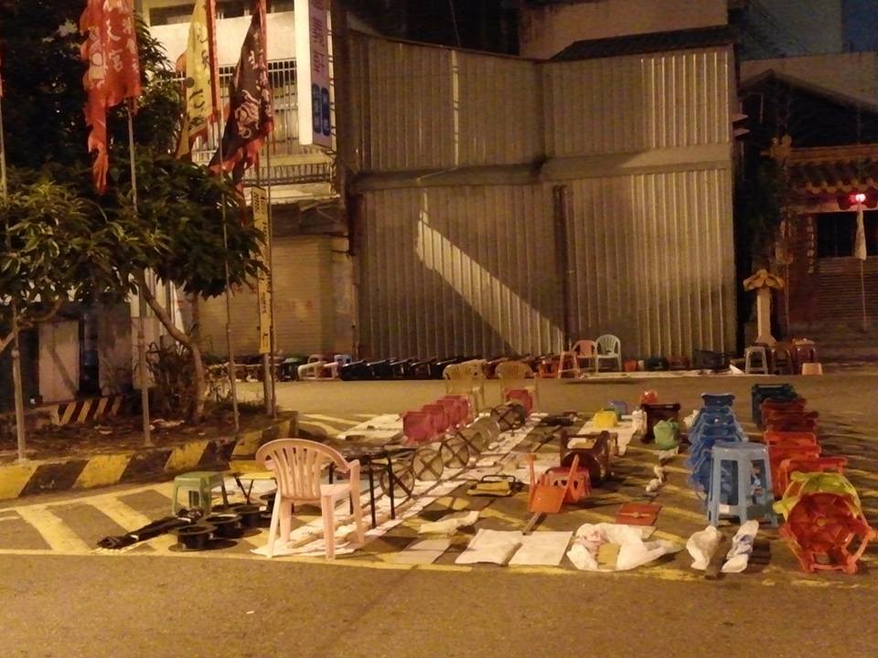 ▲深夜馬路上排滿椅子。(圖/翻攝自爆料公社)