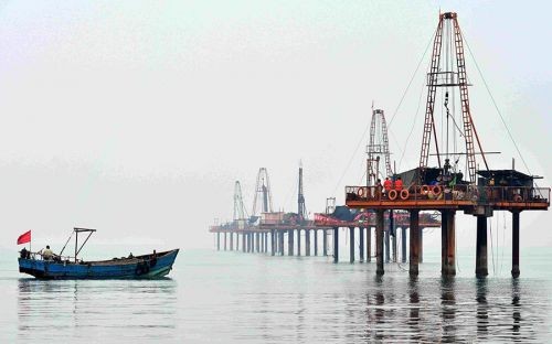 目前在萊州市三山島海域詳查工作完成鑽探12萬多公尺,施工高峰期間,同時多達52座機台一起探勘,搭建海上鑽井平台67架次,施工人員最多時共有1000多人,按照計劃,本月30日將完成整個勘探任務。