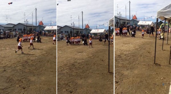 ▲幼稚園舉辦運動會小朋友們賣力地奔跑,結果......。(圖/翻攝自「1124rk_towa」推特,下同)