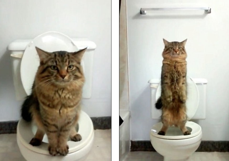 該名女主人把她訓練貓貓的影片PO上網。影片顯示貓貓蹲坐在馬桶上,以牠的腿撐住身體的重量,就像人類蹲坐在馬桶上。更好笑的是,貓咪上完後,還會站起來抖一抖!