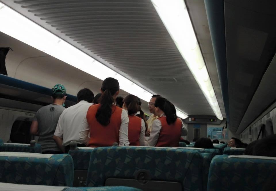 一名李姓網友13日晚間在「爆料公社」貼文,他搭乘高鐵219車次由台北開往左營的班車,途中聽到列車長廣播有旅客需要「緊急醫療」,盼有相關經歷的旅客能協助,沒多久就看見7、8人到場協助。這景象感動了李姓網友,他拍下照片傳上網分享,直言「誰說台灣人很冷漠」?