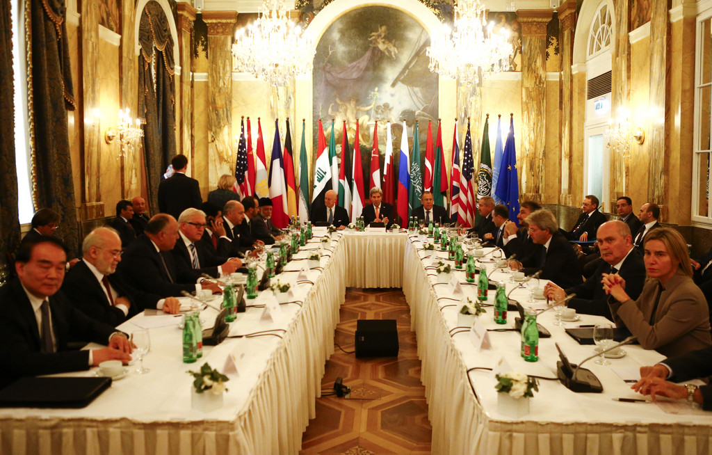 中東動亂造成大量民眾流離失所,不僅促成今年的歐洲難民潮,也成為恐怖組織的溫床。世界各主要國家的外交部長14日在奧地利維也納召開會議,商討敘利亞內戰問題並達成共識,決定敘利亞政府與反叛軍需在6個月內談和並籌組過渡政府,在18個月內制定新憲、舉行大選。