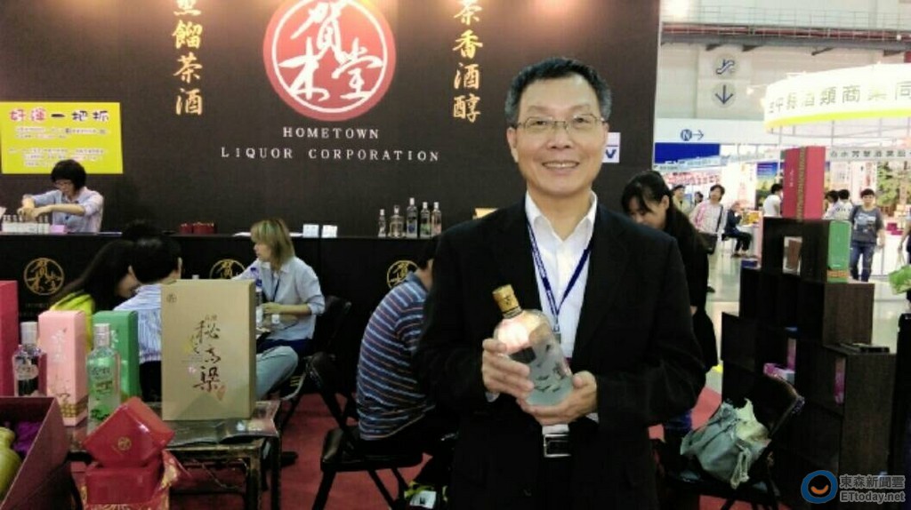 ▲前台灣菸酒公司董事長、現賀木堂公司執行長蔡木霖,在2015 台灣國際茶酒咖啡展推薦茶香白酒「最陸羽」。