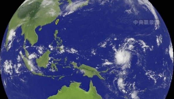 ▲關島東南方海面熱帶雲系正在蘊釀發展。(圖/中央氣象局)