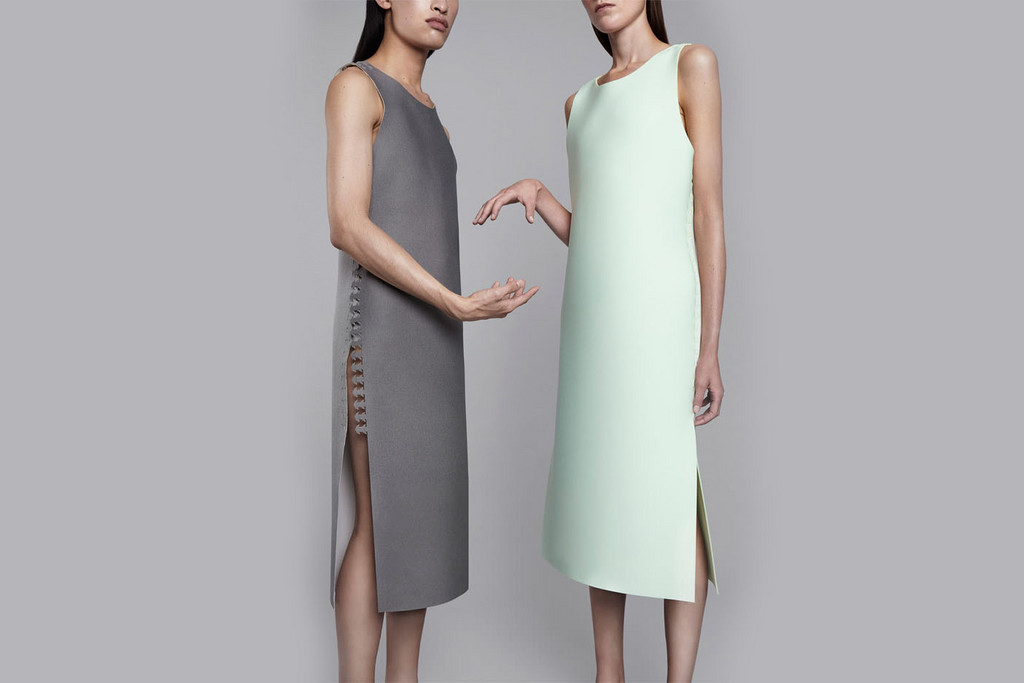 根據官網說明,包含洋裝、無袖長版外套、裙子、短板上衣、連身裙、T恤在內的6件服裝,現階段只提供2種購入選擇,其一是下訂後,由The Post-Couture Collective寄出針對身材量身訂做、雷射切割出的布料元件,收到後只需稍微動手組裝即可;另一種則是收到整塊布料,必須至官網自行下載版型檔案,將檔案傳入自用或所在地鄰近的創客空間中的雷射切割機,以雷射切割機切割布料後再行組裝。