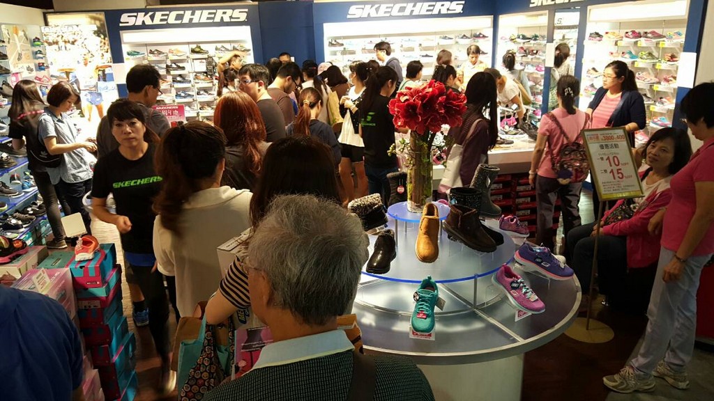 主打流動客層的京站時尚廣場週慶今日邁入第二天,排隊人潮依舊不減,經過統計,目前表現最亮眼的是各大品牌的運動跑鞋,光是昨天首日就已出售超多3,000雙。銷售為首的Skechers機能鞋款和慢跑鞋單日就狂銷近千雙,較去年成長近1倍,照這情勢看來,國人運動風潮持續加熱,並已成為生活一部份。