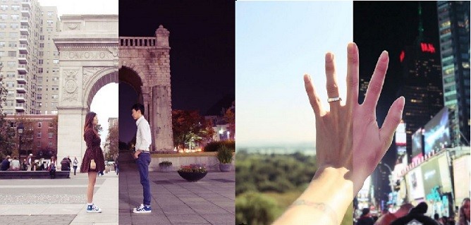 ▲運用巧妙的拍攝手法與電腦加工,情侶讓首爾與紐約僅「一步之遙」。(圖/取自shinliart instagram,下同)