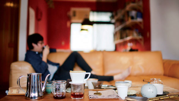 環顧家中,王耀邦最喜歡的空間是客廳。「有2樣物件幾乎決定了家的氣氛,就是長桌和沙發。」和一般的客廳長桌不同,6個回收木材製造的木箱合併成長桌,擺滿大量的杯具、茶壺;左邊牆面則放滿紀念品;坐在沙發,正對著窗戶與影音器材,不工作時,客廳幾乎就是王耀邦的主要活動空間。但器物是固定的,家具總不能無限擴張,想在不變中有變化?植物是非常有趣的解方。