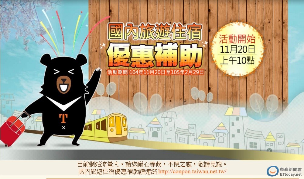 ▲觀光局20日上午10時開放旅宿補助,但網頁大當機。(圖/翻攝自觀光局網頁)