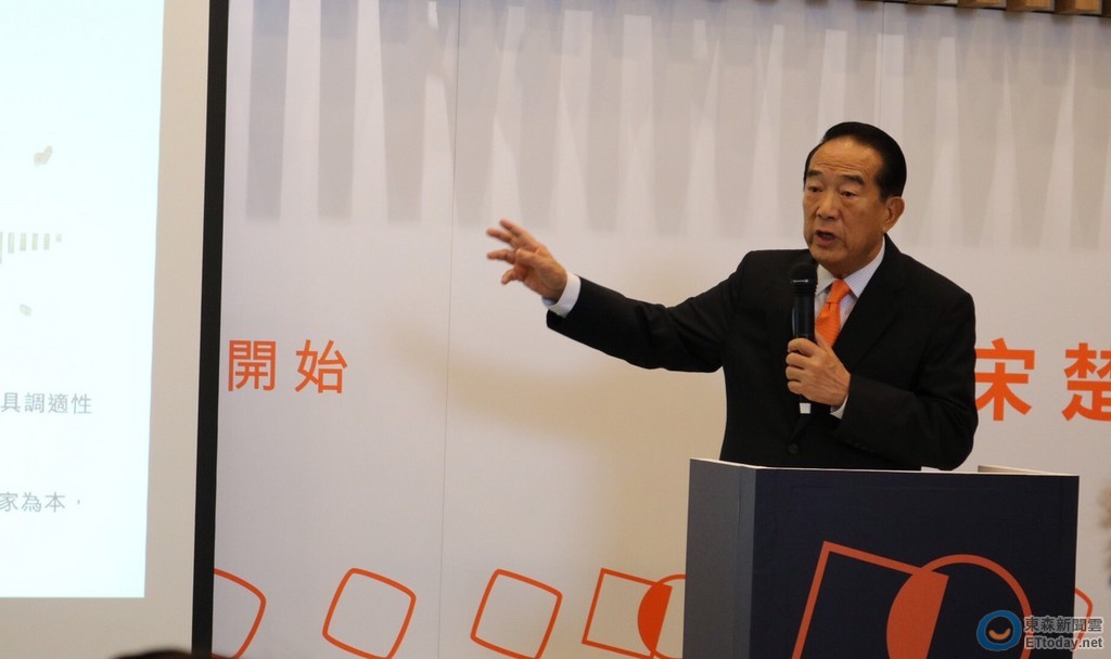 親民黨發言人李鴻鈞首先上台表示,這次競選LOGO由年輕人馬克設計,呈現出年輕人期待台灣未來有「外圓內方」這樣的規矩,他並指出競總內部牆上的立體台灣拼貼圖表示,台灣雖然只有一點大,但中央、地方仍長期推託問題,因此需要踏遍台灣足跡、對各項建設都有經驗的宋楚瑜來帶領,跳脫2大黨的框架,選出有能力的人,而非再實驗性地挑選台灣領導人,希望明年1月16號全國百姓大家來響應。