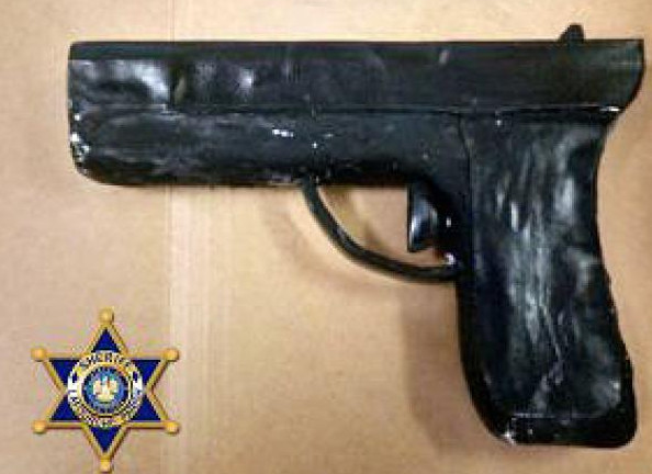 據《紐約每日新聞》報導,49歲貝納(Troy Benner)與32歲皮耶龍(Treiston Pierron)利用肥皂與衛生紙做出一把黑色的假手槍,雖然看起來就像是小學生的美術課勞作,但由於材料取得不易,也算是一項傑作。
