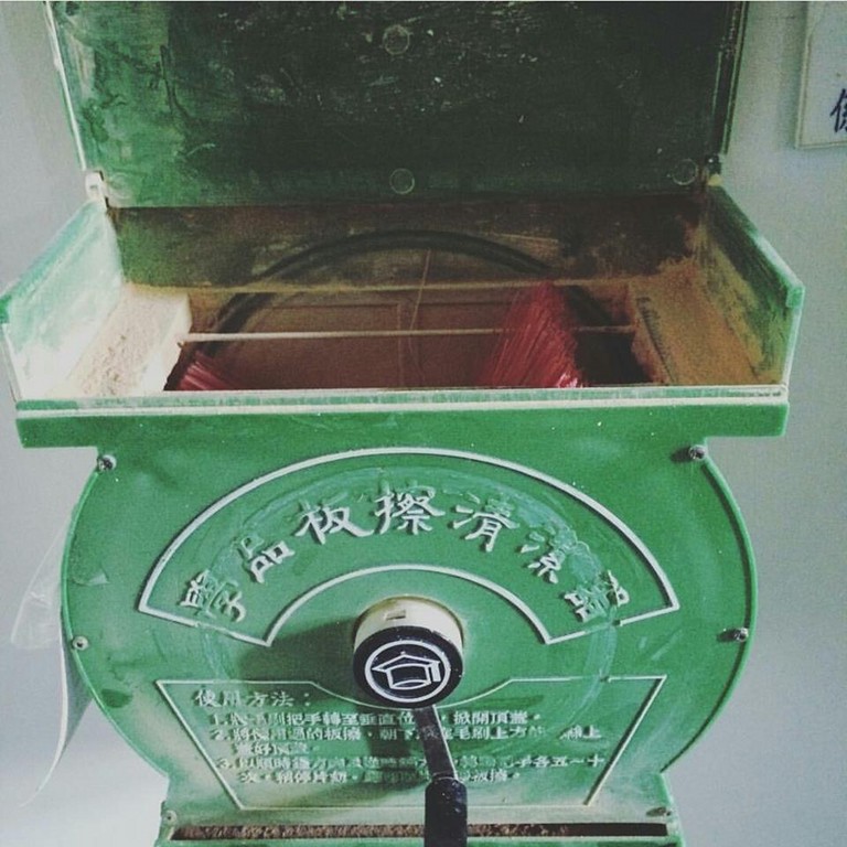 有網友在「爆廢公社」貼出板擦清潔器的照片,問網友們「還記得這個東西嗎?」,瞬間勾起網友回憶,紛紛在下方貼出自己教室內的照片,有網友說,「這個根本清不乾淨,我們都是用棒子打的」、「這個最好玩的就是把所有粉筆灰拿來整老師」、「我們教室還有啊!」