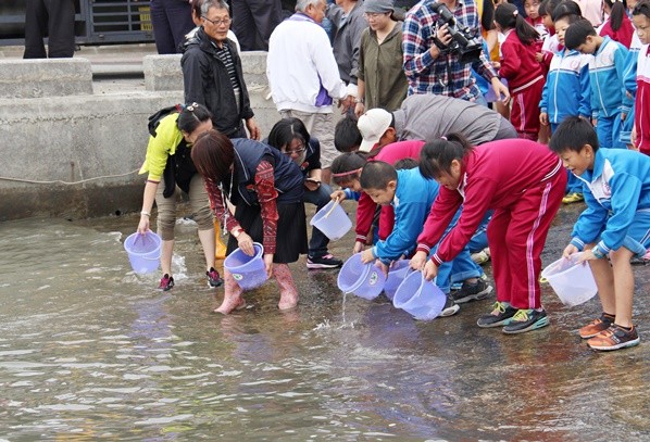 這次參與魚苗流放的文苑國小50多位3年級學童,每個人都拿著裝有長約2公分的小魚苗水桶,小心翼翼地將魚苗倒入大海裡,看著小魚在漁港自在地游著,小朋友們都笑得好開心表示,「希望小魚快樂長大」。而苗栗縣副縣長鄧桂菊也提到,這次流放的魚苗經抽查無藥物殘留符合規範,希望能補充天然生產力的不足,讓漁獲業能夠生生不息的永續利用,同時也此機會教育,讓參與的小學學童能理解海洋資源保育的重要性,為地球盡一份心力。