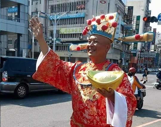 台灣阿成25日扮成財神爺騎著貼滿玩具鈔的機車,到嘉義市選委會撒玩具千元大鈔和糖果,也在登記時向選委會要求,選舉公報上必需印上他設計的「偉大中華台灣神聖民主共和國國旗」印入,還有開票唱票時,要念完他的全名,以尊重他的人權。