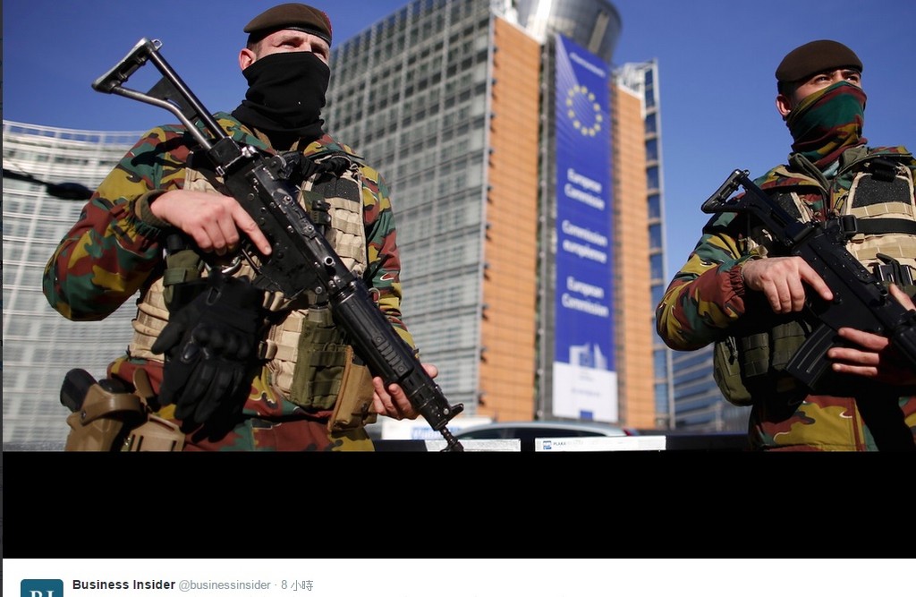 ▲比利時26日降低反恐警戒,不過仍會派軍巡邏。(圖/翻攝自@businessinsider Twitter)