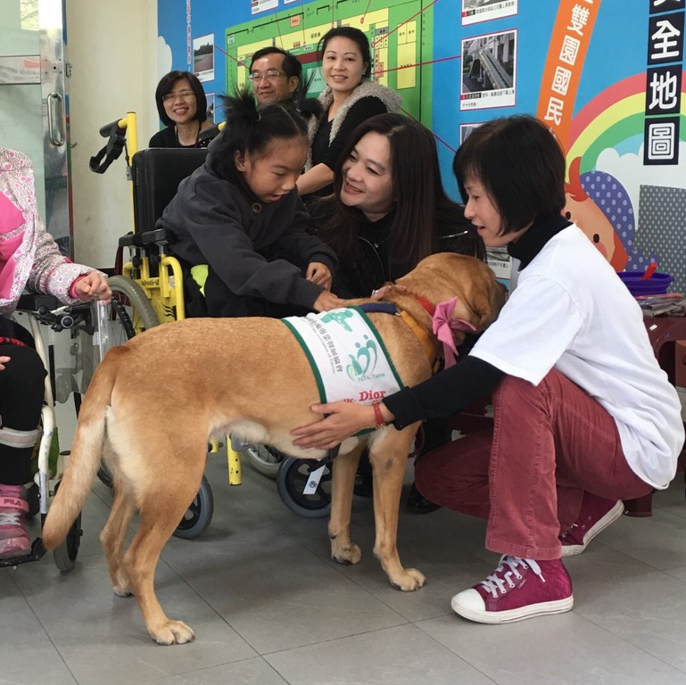 台北市雙園國小27日來了一群特殊的治療犬,前進特教班,與特教的孩子一起上課、互動、玩遊戲,原來是台灣治療犬協會的「動物輔助治療」活動,安排狗狗Dr.Dior陪伴特教孩子做身心靈治療。台北市議員應曉薇也到場,她表示,特教孩子是相對弱勢的一群,藉由治療犬能夠降低壓力,增加學習環境的安全感。