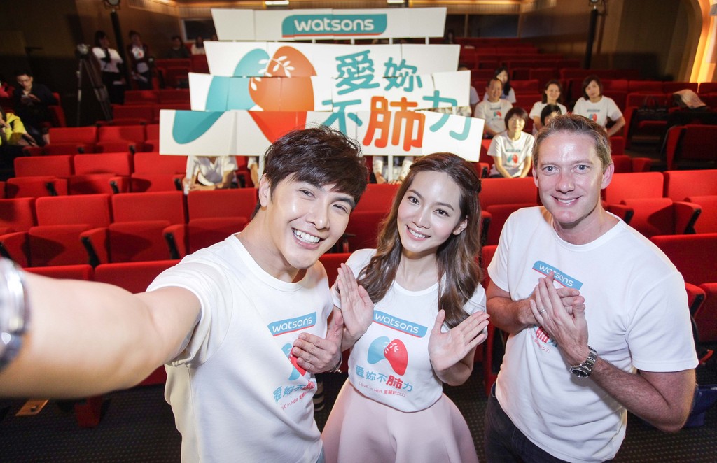 今年屈臣氏也邀請超高人氣、熱度不滅的最佳螢幕情侶─謝佳見、曾之喬擔任年度公益大使,大方分享「守護肺部健康」小撇步、齊喊愛肺宣言、與粉絲集體舉牌拼出大型愛肺圖案自拍合照,還熱情邀請台灣屈臣氏董事總經理安濤Toby Anderson一同入鏡。