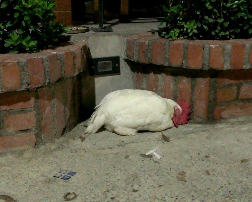 網友在「爆廢公社」PO文「女朋友工作的地方來了一隻雞,好像兩三天了,牠在那邊定居了,不知道哪裡跑來的雞,可以po去失蹤寵物協尋嗎?還是要燉來吃啊?」最後還附上牠在路邊睡覺的樣子。不過,沒想到過一會兒又傳出雞被狗攻擊,受到驚嚇,掉了很多毛,處境讓網友擔心。