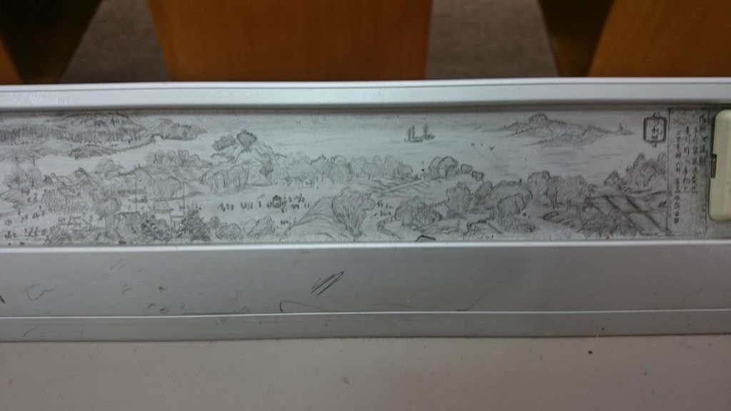 有網友29日在PTT八卦板貼出一組照片,表示因工作關係到陽明大學看產品,竟然發現有學生在教室桌上的線槽盒畫了一整幅北宋畫家張擇端的「清明上河圖」,精細程度直逼原作,讓眾網友驚訝不已,直呼「根本陽明唐伯虎啊!」