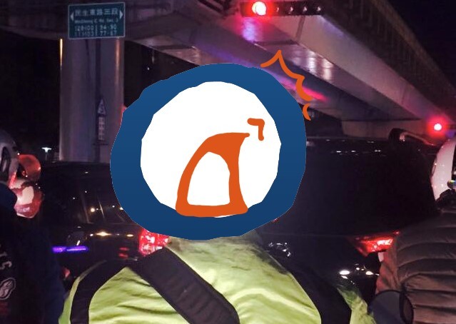 照片中,地點位於台北市民生東路三段附近,一名男騎士戴著一頂宛如舞廳的「水晶魔球」造型安全帽,昏暗的夜色中,在機車大燈的照耀下,安全帽閃閃發亮。