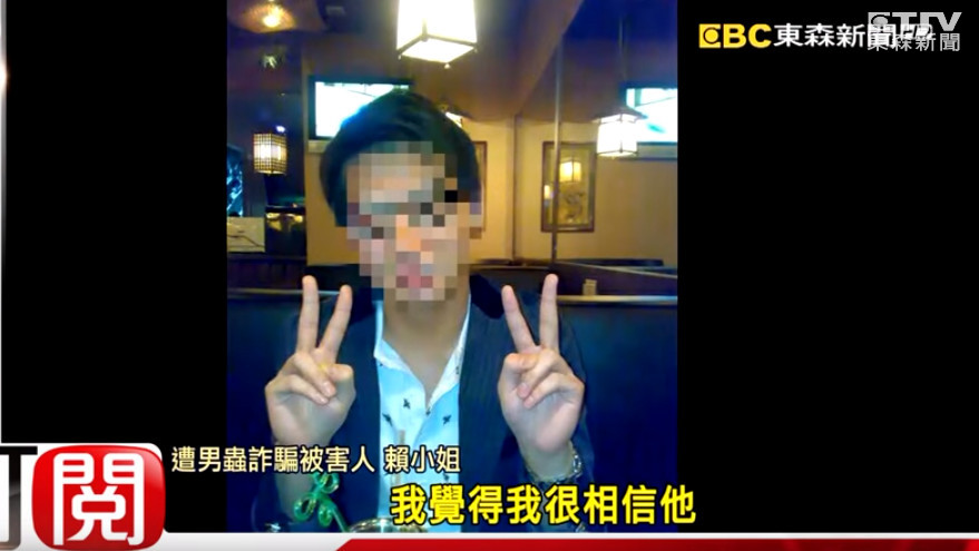 被男蟲受騙的賴小姐說,陳加強宣稱,買賣的套房很搶手,可以賺中間的價差600萬,過程中一定要先付保證金,因此自己錢錢後後就匯了80萬元,之後對方收到錢就失聯。她說,「我以為說我找到真愛,因為跟他聊天過程中,有看到整個照片和名字,所以就很相信他,才會把自己的心情釋放出來。」