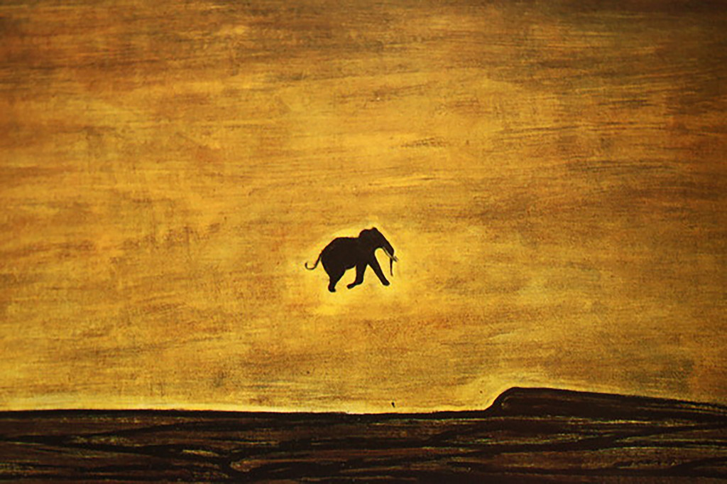 當時常玉並不知道,這將是他最後一幅作品。廣袤無垠的乾涸沙漠中,憑空出現一隻簡化到只剩輪廓線的小象,沒有象群家人的守護,獨自奔跑著。三天後,在巴黎一片暑意的八月中,身無分文的常玉,瓦斯中毒死在畫室中,那年,他六十五歲。這幅畫強烈地令人想起《小王子》的小象,不知大半生在巴黎的常玉有沒有讀過這本書。總之,常玉死了,不管是沙漠裡的孤獨小象,或是蟒蛇肚子裡的小象,也正走向同樣結局。