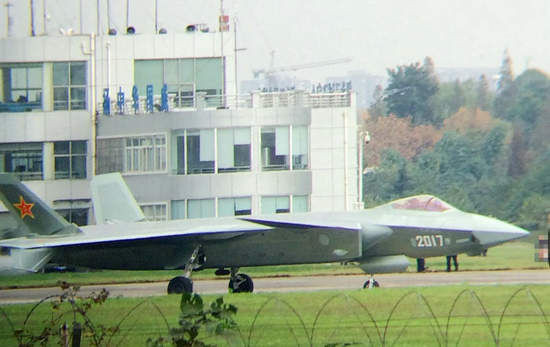 大陸最新一架編號2017號的第四代隱形戰機殲-20近日首飛,進行了兩次通場並在空中飛行20分鐘。這架新戰機為座艙蓋增加金屬鍍膜,可進一步提高飛機的隱身性能,飛行員正前方部位的邊緣曲線也有所收縮 。值得注意的是,相較於以往,這次2017號殲-20首飛竟有女服務員獻花。