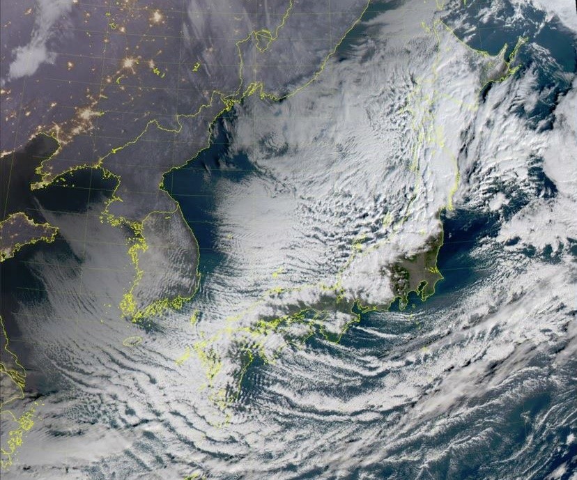 由於受到東北季風影響,今天清晨板橋出現15.7度低溫,中央氣象局表示,今天白天氣溫逐漸回暖,預計北部、東半部高溫約在19至23度,中南部約25至28度,但周日又會有一波鋒面南下。氣象預報中心主任鄭明典指出,圖中出現一團團白雲連接起來的長條狀雲稱為「雲街」,出現這種雲代表冷空氣正移出海面。