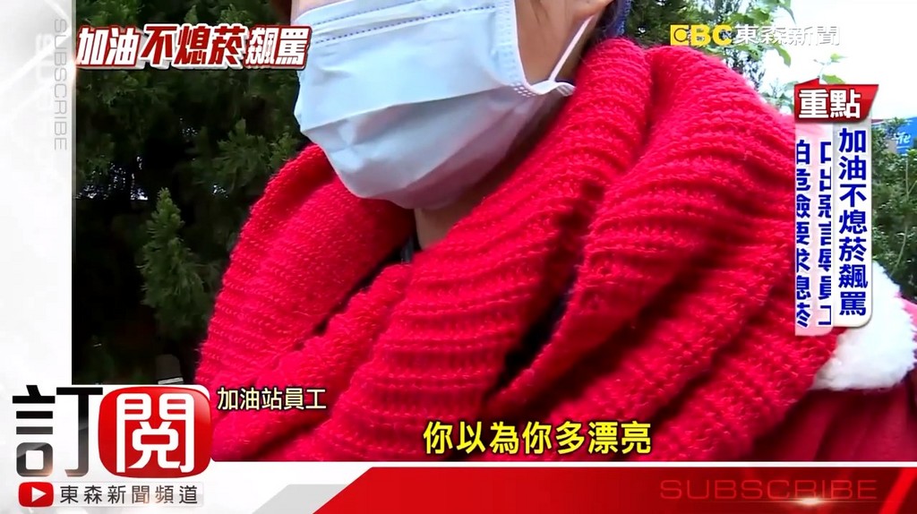 不僅如此,司機竟還口出惡言辱罵女員工,甚至做人身攻擊,讓才來加油站打工2個月的她好委屈。女員工轉述客人對她說的話,「妳以為妳多漂亮,妳如果很漂亮就不會站在這了,妳是站在酒店。」