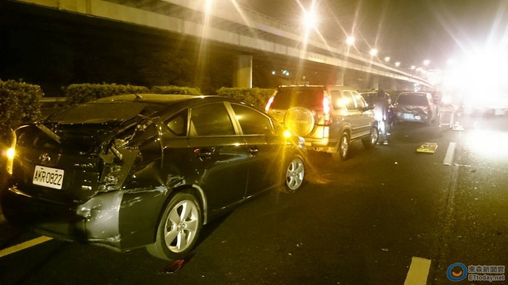 國道1號北上36.3公里、泰山路段5日晚間8時許發生嚴重車禍,一輛貨櫃車失控追撞6輛自小客車,所幸現場並無人員受傷,貨櫃車則橫佔馬路中,4線道就有2道受影響,警消已派人前往排除車禍,事故原因則交由國道警方進一步釐清。