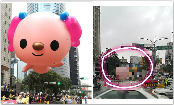 不過也有人出面解釋,照片拍攝地點其實已經到了遊街的尾端,卡通氣球們最後都會來到這裡洩氣收起帶走。而據了解,當天大遊行為因應人潮,封鎖部分路段讓活動能順利進行,但也造成附近交通大打結,不過不少人還是願意冒著雨前往合照,相當熱鬧。