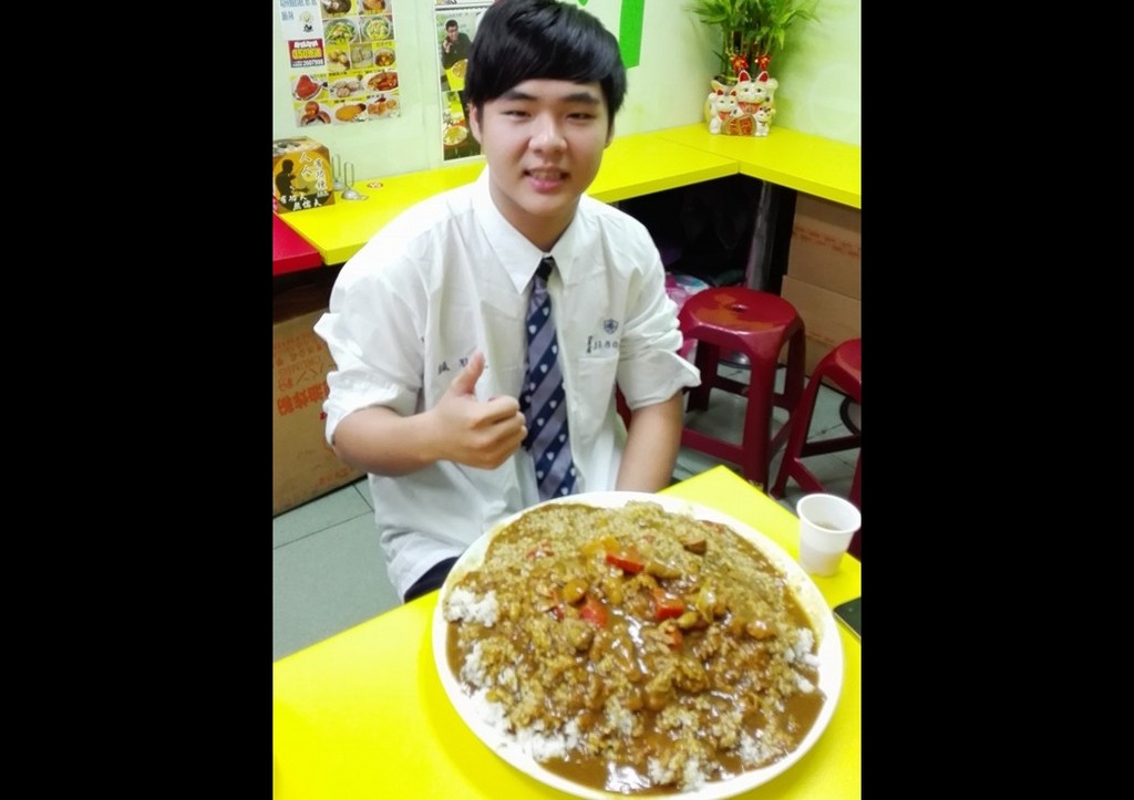 7日晚間,一名長榮中學學生穿著制服,疑似是放學之後前往挑戰兼吃晚餐,身形中等的他霸氣吃完10人份咖哩飯,2000元獎金入袋!照片隨後被分享到「爆廢公社」,許多網友紛紛留言朝聖,「他可以去日本參加大胃王比賽了」、「長榮建兒」、「光看就飽了」、「黃金傳說」、「那份量可能夠我吃5天」、「懷疑你的胃......是萬中選一的練武奇才」、「吃飯前領帶是打好的,吃完後領帶都鬆開了,可見吃的很辛苦。」
